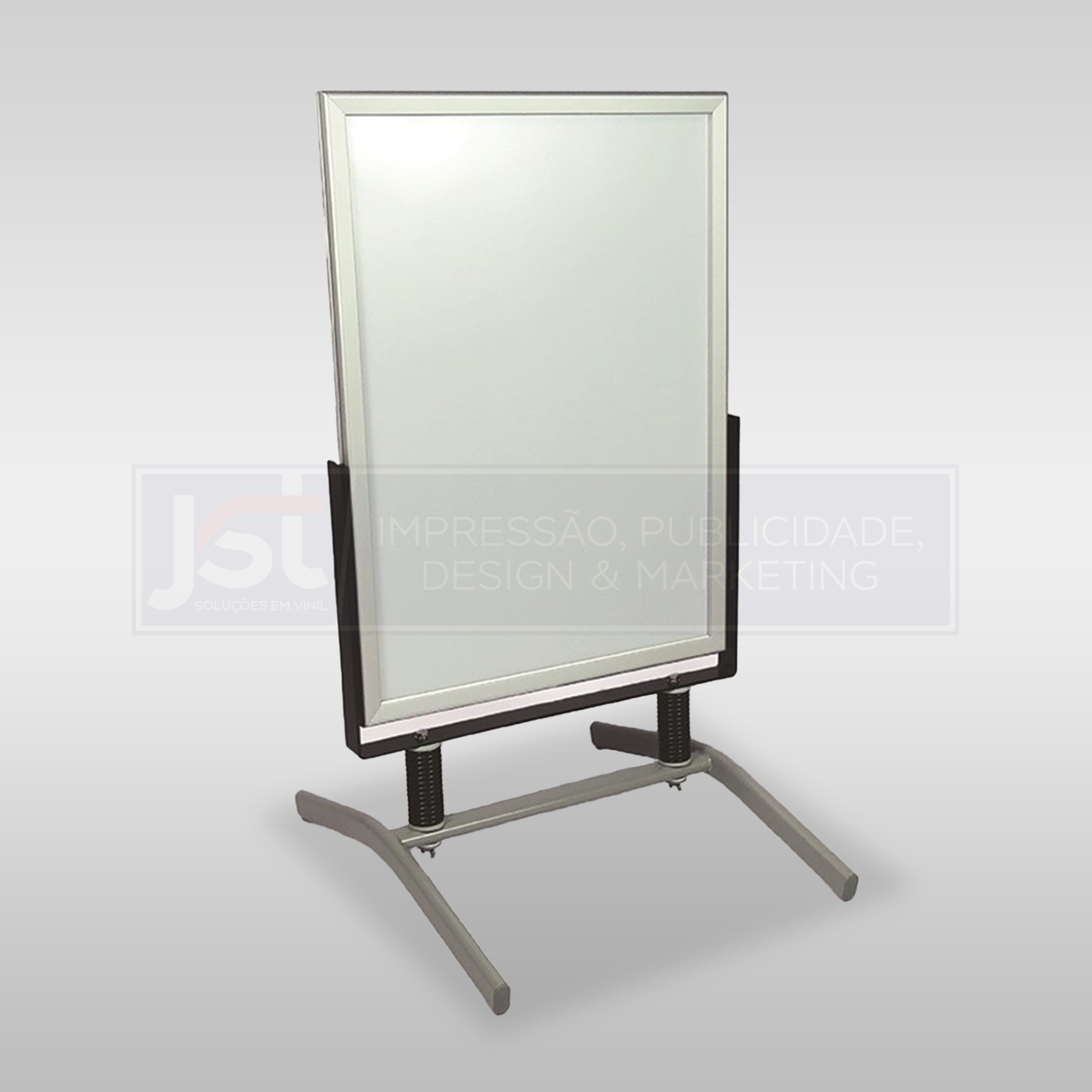 O Swing Poster Stand Dupla Face é um sinal de pavimento muito resistente ao vento uma vez que apresenta como base umas pernas longas e paralelas que fazem com que este poster seja bastante estável e com longo período de vida.