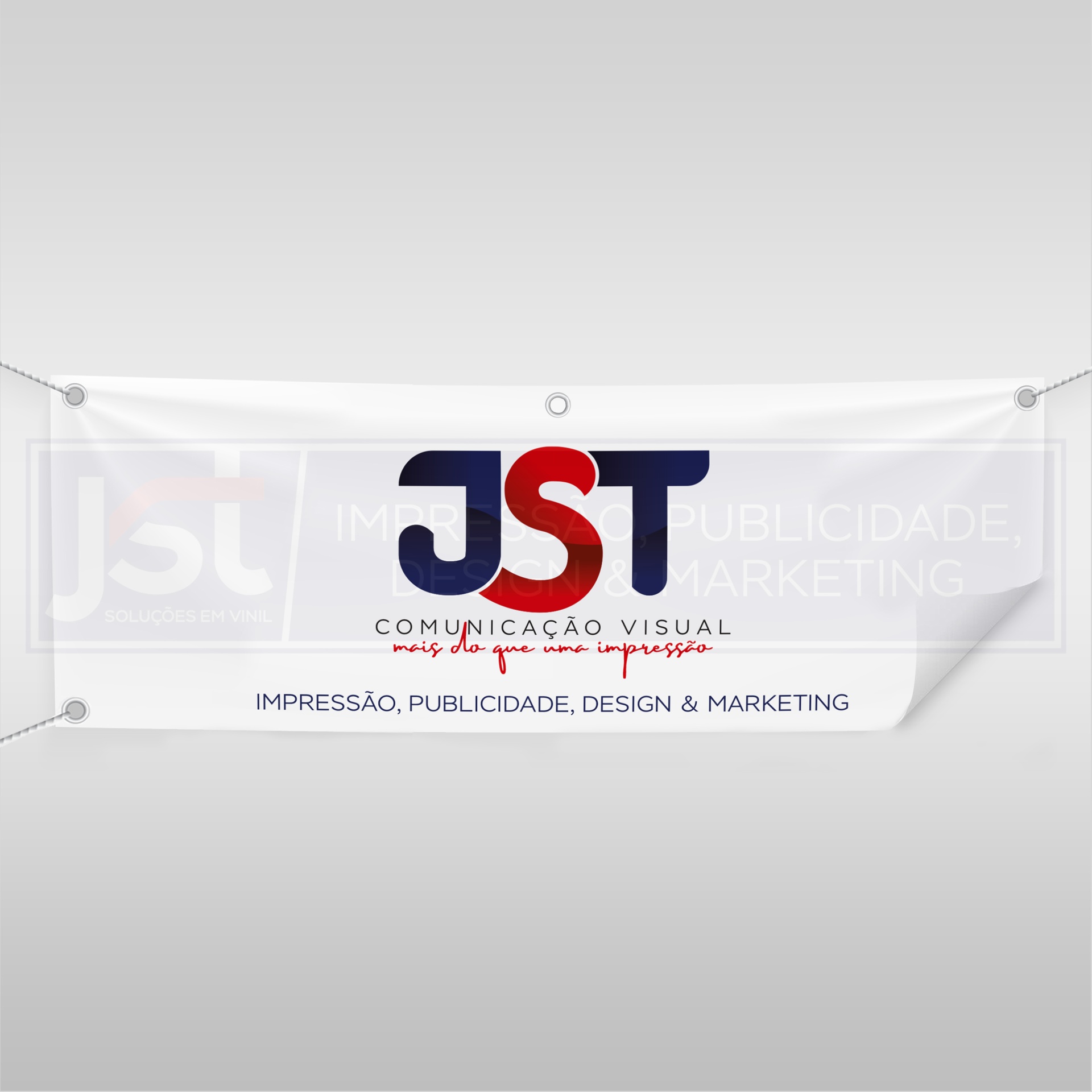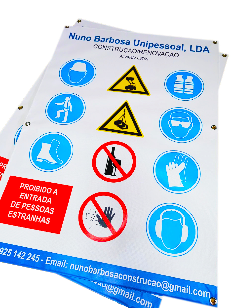 Lona branca com malha de poliéster, opaca, revestida a PVC com 450 gr/m² de espessura. Disponível em verso branco ou preto.