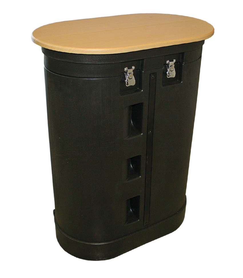Para além destas funcionalidades, esta mala tem como acessório opcional um tampo de madeira, uma vez que tem a dupla funcionalidade de ser utilizada como balcão.