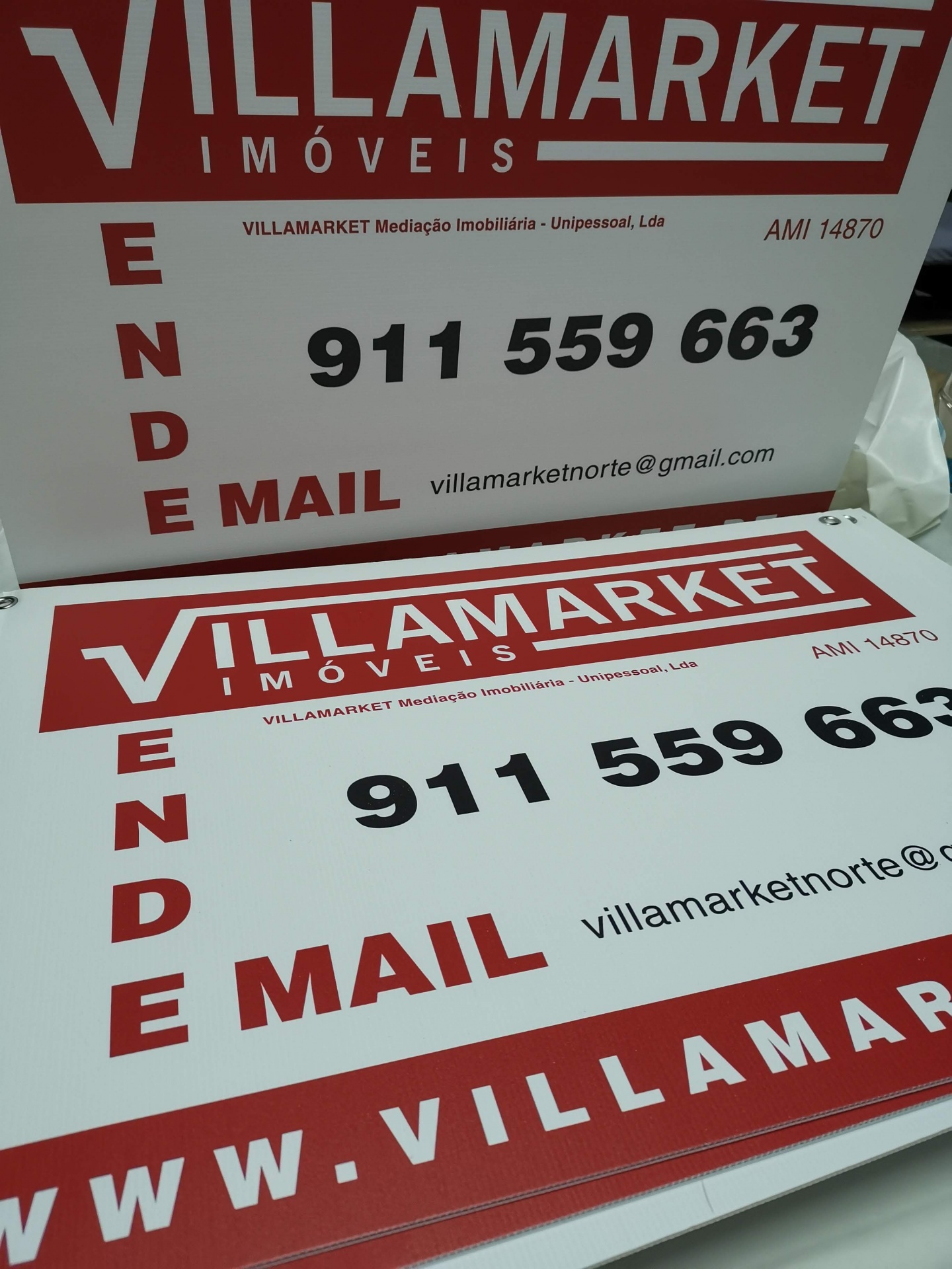 Fabricada com materiais duráveis e resistentes, é ideal para anúncios de venda, arrendamento ou divulgação de empreendimentos.