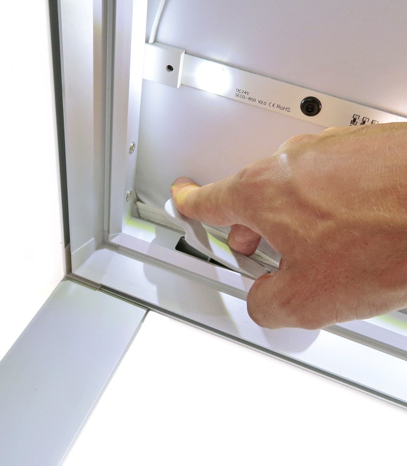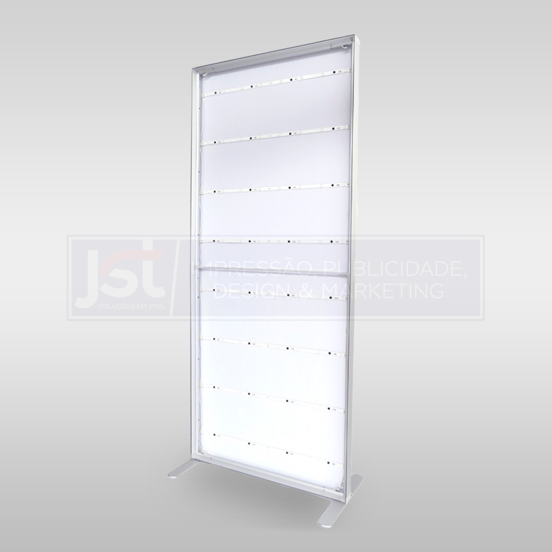 São estruturas em alumínio com produção em têxtil. Possuem um sistema de iluminação LED embutido já nos perfis, tornando mais rápida a montagem deste expositor.